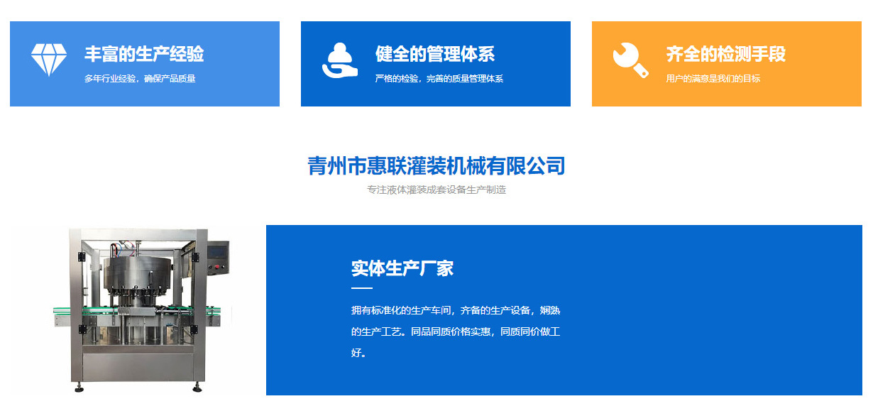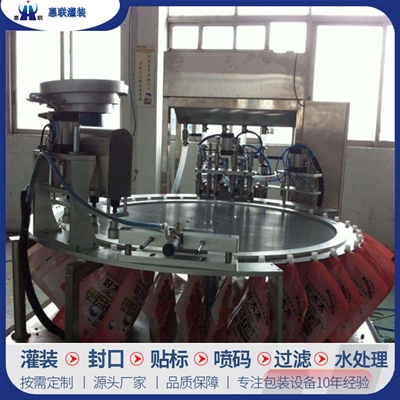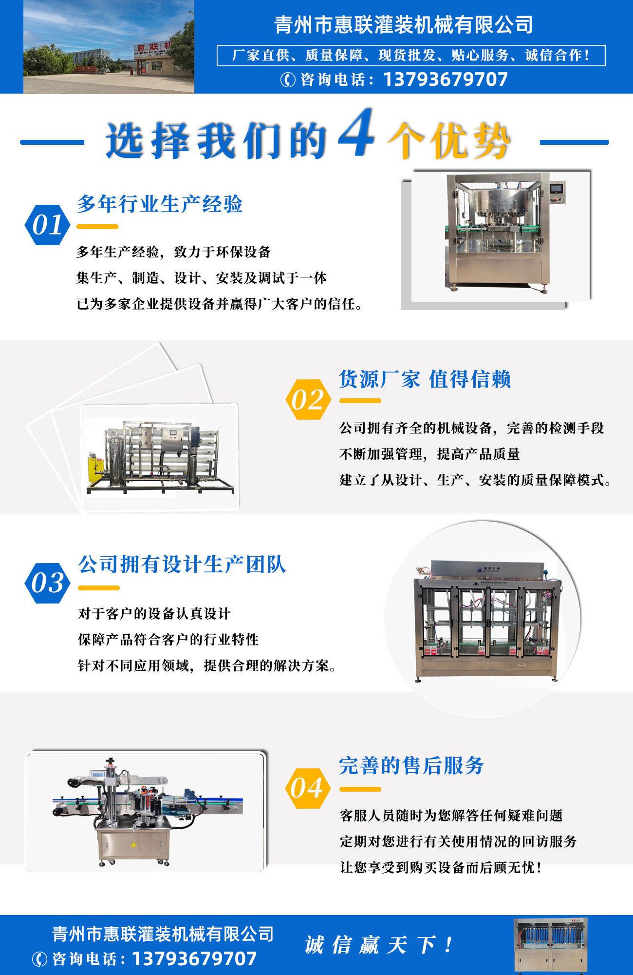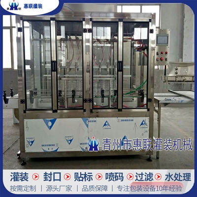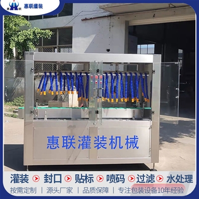 青州市惠聯(lián)灌裝機(jī)械有限公司是一家集生產(chǎn)研發(fā)、銷售、服務(wù)于一體的液體灌裝成套設(shè)備生產(chǎn)企業(yè),可根據(jù)廠家要求設(shè)計(jì)合理液體灌裝生產(chǎn)線,為用戶提供技術(shù)咨詢、設(shè)計(jì)工藝、場區(qū)平面布置、工藝改造、設(shè)備安裝調(diào)試等完善服務(wù)。 公司生產(chǎn)制造各種類型液體灌裝機(jī)、過濾機(jī),水處理設(shè)備及液體灌裝成套設(shè)備。主要產(chǎn)品有:白酒、葡萄酒、黃酒等酒水灌裝機(jī)、食用油、機(jī)油、潤滑油等油類灌裝機(jī)、醬油醋、老抽、生抽等調(diào)味品灌裝機(jī)、防凍液、玻璃水灌裝機(jī)、酒精、84消毒液灌裝機(jī)、車用尿素灌裝機(jī)、口服液灌裝機(jī)、洗滌劑灌裝機(jī)等多種液體、膏體灌裝設(shè)備,全自動(dòng)/半自動(dòng)灌裝機(jī)型號(hào)多,規(guī)格全,洗瓶機(jī)、瓶子封口機(jī)、打塞機(jī)、熱縮機(jī)、瓶子烘干機(jī)、貼標(biāo)機(jī)、噴碼機(jī)、輸送線、裝箱機(jī)、水處理設(shè)備等全套生產(chǎn)線相關(guān)配套設(shè)備齊全,自產(chǎn)自銷,一站式購齊,售后無憂。